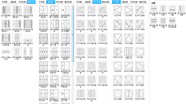 系統(tǒng)預(yù)設(shè)好門窗的外框,開啟扇,紗扇,鋁板,百葉,中梃等門窗設(shè)計常用元素,即點即用,無需基礎(chǔ)